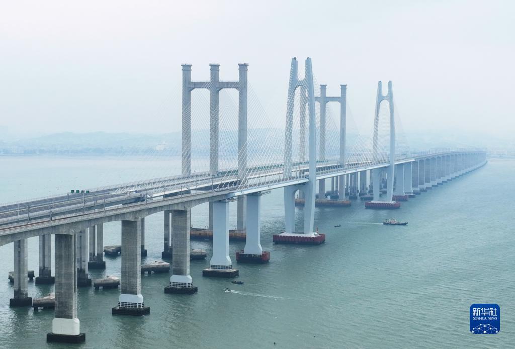 新建福廈鐵路泉州灣跨海大橋(4月12日攝,無(wú)人機照片)。