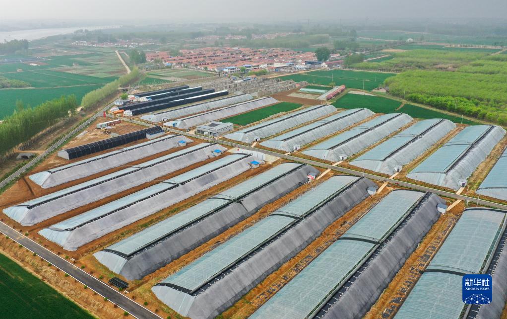 這是4月14日拍攝的山東省泰安市岱岳區范鎮鄭寨子村農業(yè)產(chǎn)業(yè)園景象(無(wú)人機照片)。