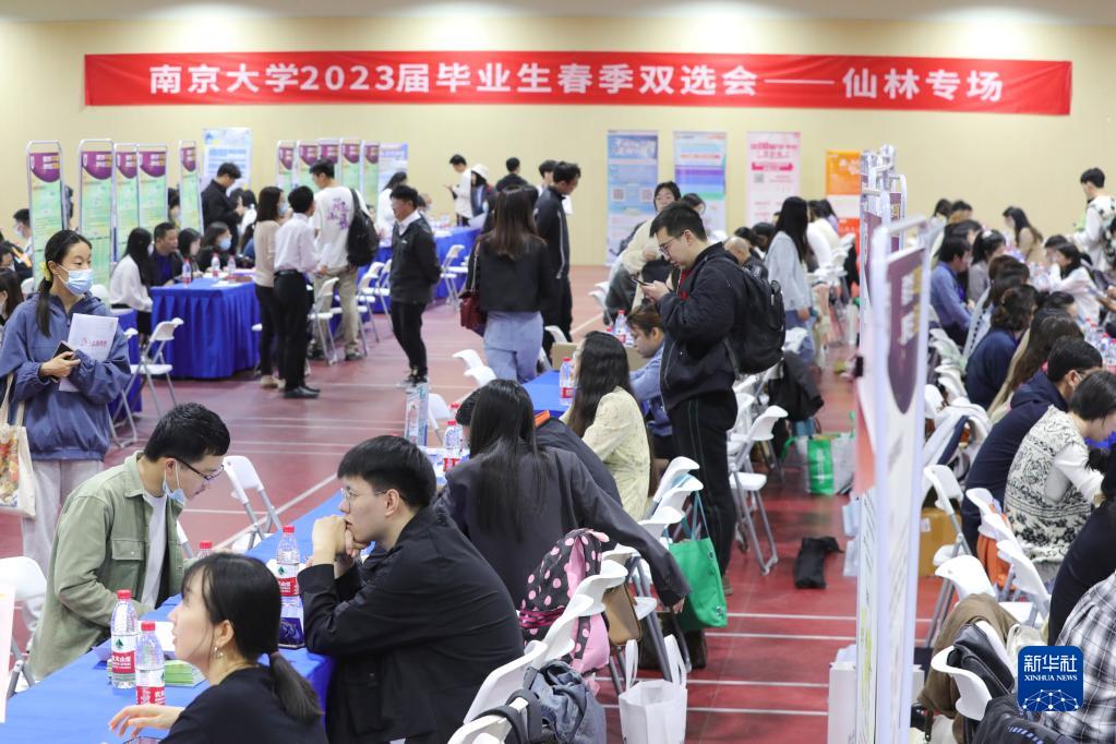 當日,南京大學(xué)2023屆畢業(yè)生春季雙選會(huì )在南京大學(xué)仙林校區舉辦。雙選會(huì )面向校內外學(xué)生開(kāi)放,吸引了來(lái)自北京、上海、南京等地的180家企事業(yè)單位參會(huì ),提供近1.5萬(wàn)個(gè)崗位。