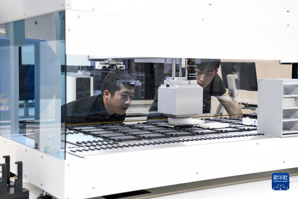 工作人員在調試合成生物研究大科學(xué)裝置(4月17日攝)。