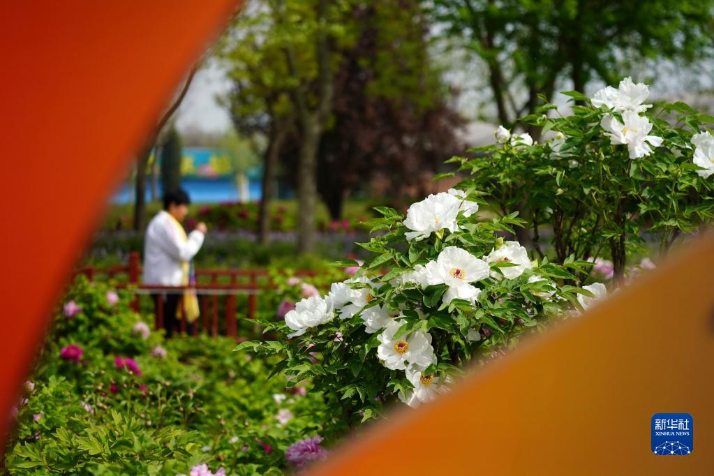 4月18日,游客在河北省柏鄉縣漢牡丹園游覽。