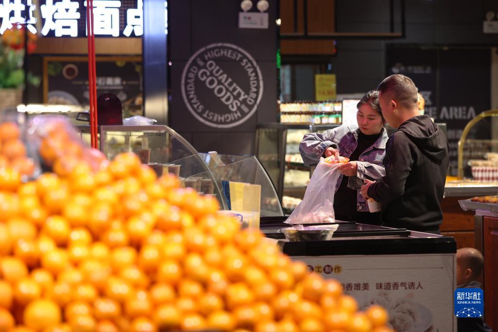 消費者在貴州省黔東南苗族侗族自治州岑鞏縣一家超市選購食品(3月15日攝)。