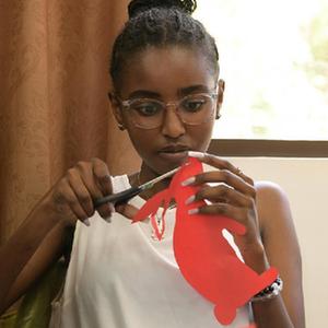 4月18日,肯尼亞學(xué)生在內羅畢大學(xué)孔子學(xué)院舉辦的活動(dòng)上寫(xiě)毛筆字。