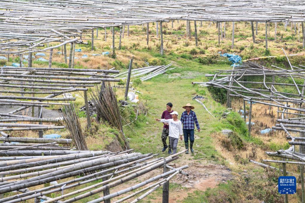 4月18日,在大湖鄉東姚村湖東果蔬農民專(zhuān)業(yè)合作社種植基地,村民在討論春耕春種計劃。這個(gè)種植基地流轉本村100多畝山壟田,發(fā)展多元果蔬種植,在增加自身收益的同時(shí)也帶動(dòng)了周?chē)r戶(hù)共同發(fā)展。