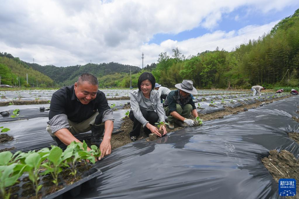 4月20日,返鄉創(chuàng )業(yè)人才俞冬紅(中)在位于臨安區昌化鎮后營(yíng)村的蔬菜基地與農戶(hù)交流。俞冬紅成立了“昌西公社”,發(fā)揮黨建聯(lián)建各單位資源互補優(yōu)勢,構建了山核桃、小香薯、高山蔬菜等農副產(chǎn)品“產(chǎn)供銷(xiāo)”種植、銷(xiāo)售對接平臺,有效助力鄉村特色產(chǎn)業(yè)發(fā)展。