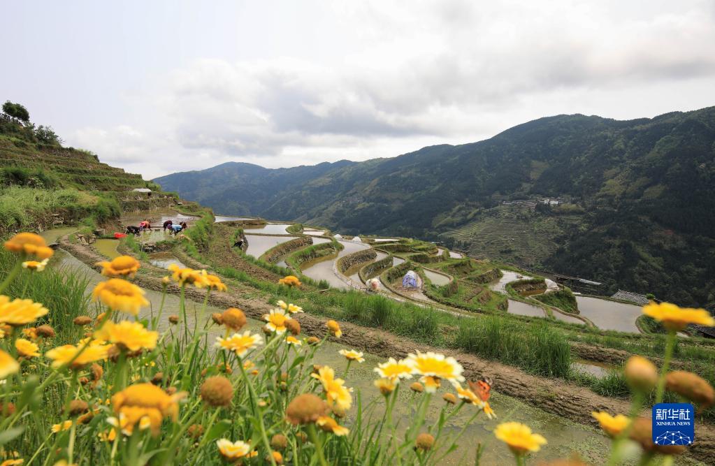 4月20日,村民在貴州省黔東南苗族侗族自治州從江縣加榜鄉加車(chē)村梯田里勞作。