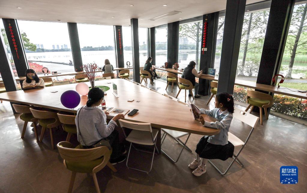 讀者在張家港市益空間·湖畔書(shū)房閱讀(4月20日攝)。
