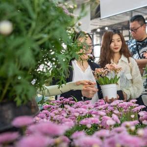 4月21日,游客在位于重慶市大足區雍溪鎮的天華百卉園花卉種植基地內選購花卉。