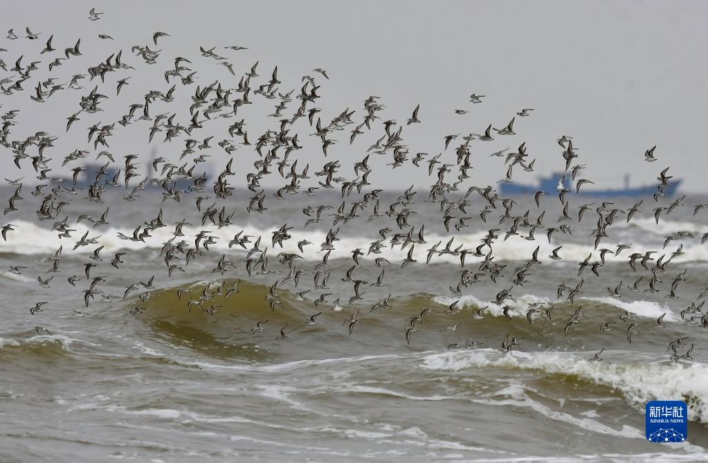 4月22日在閩江河口濕地拍攝的鳥(niǎo)浪。