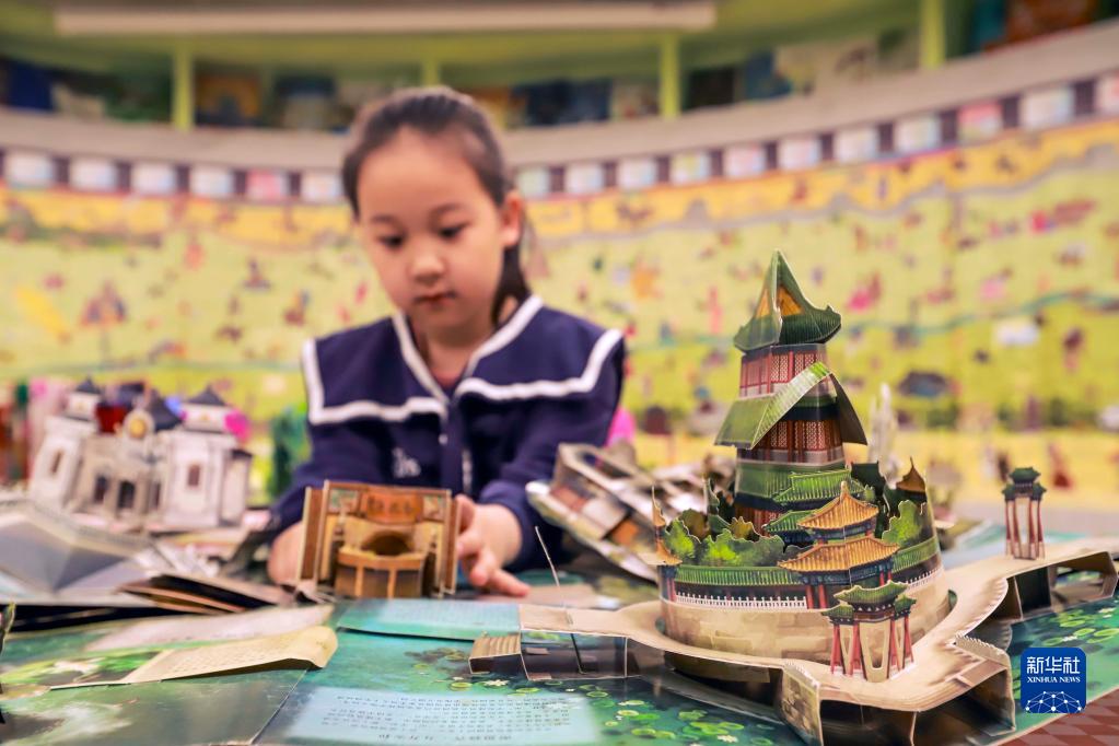 4月22日,一名小朋友在河北省遵化市一家書(shū)店翻看立體書(shū)。