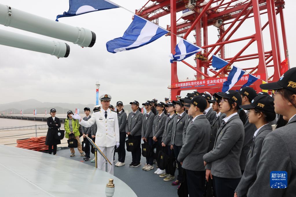 4月23日,海軍組織“戰艦與城市”雙擁共建主題活動(dòng),寧波市師生代表參觀(guān)寧波艦。新華社發(fā)(孟印祺 攝)
