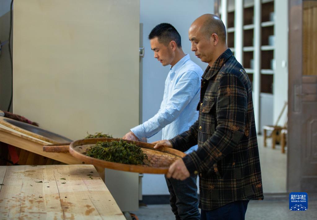 4月23日,武夷山市龍須茶制作傳承人楊冬平(前)在手工制作龍須茶。