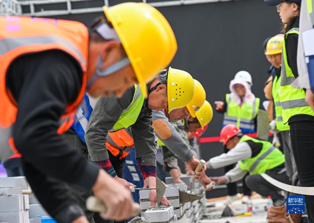 4月24日,建筑工人在參加職業(yè)技能比拼。