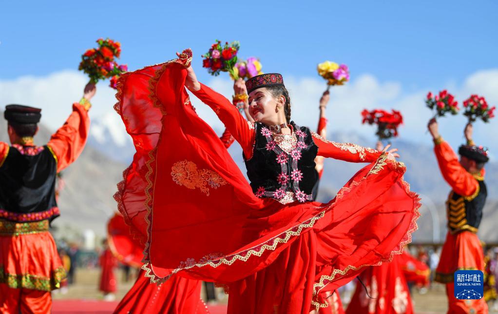 新疆塔什庫爾干塔吉克自治縣,歌舞演員在肖貢巴哈爾節系列活動(dòng)上表演(3月21日攝)。肖貢巴哈爾節是塔吉克族的傳統節日,有“新年”“迎春”之意。