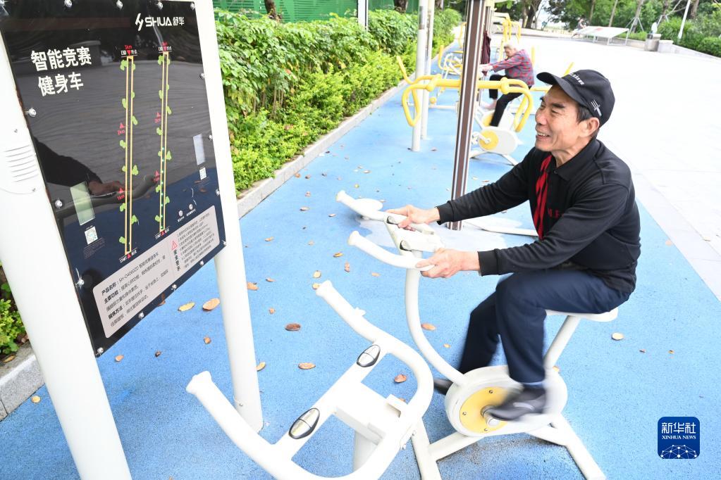 4月24日,市民在福州市鼓樓區西河智慧體育公園使用智能競賽健身車(chē)。