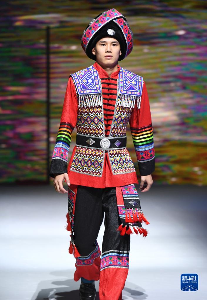 模特在廣西南寧市廣西文化藝術(shù)中心展示民族元素服飾(4月24日攝)。