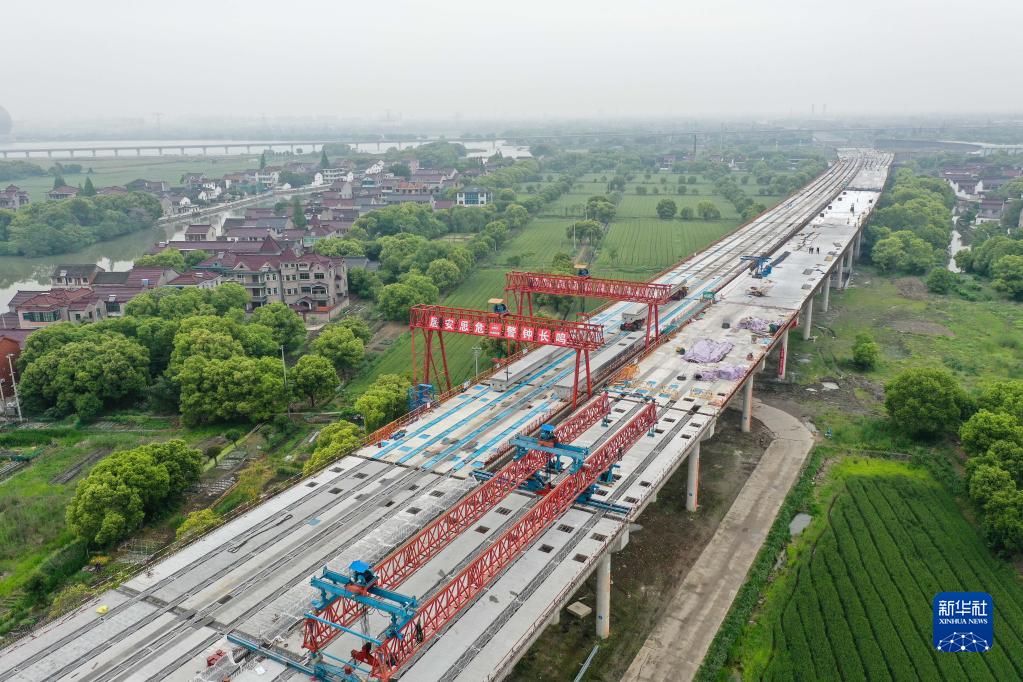 4月25日拍攝的蘇臺高速公路七都至桃源段ST-QL5標施工現場(chǎng)(無(wú)人機照片)。