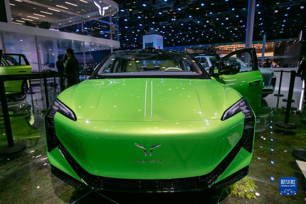 4月25日拍攝的在上海車(chē)展正式首發(fā)亮相的紅旗新能源純電轎車(chē)紅旗E001。