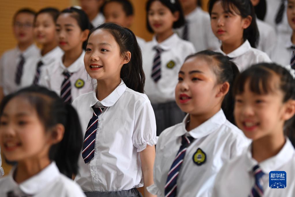 4月26日,在敦煌市西關(guān)小學(xué),合唱團的孩子們在課后服務(wù)時(shí)間練習合唱。
