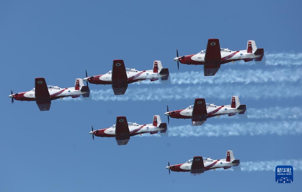當日,以色列舉行飛行表演,慶祝建國75周年。