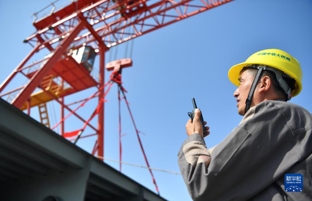 四線(xiàn)鐵路千噸鋼梁吊裝合龍