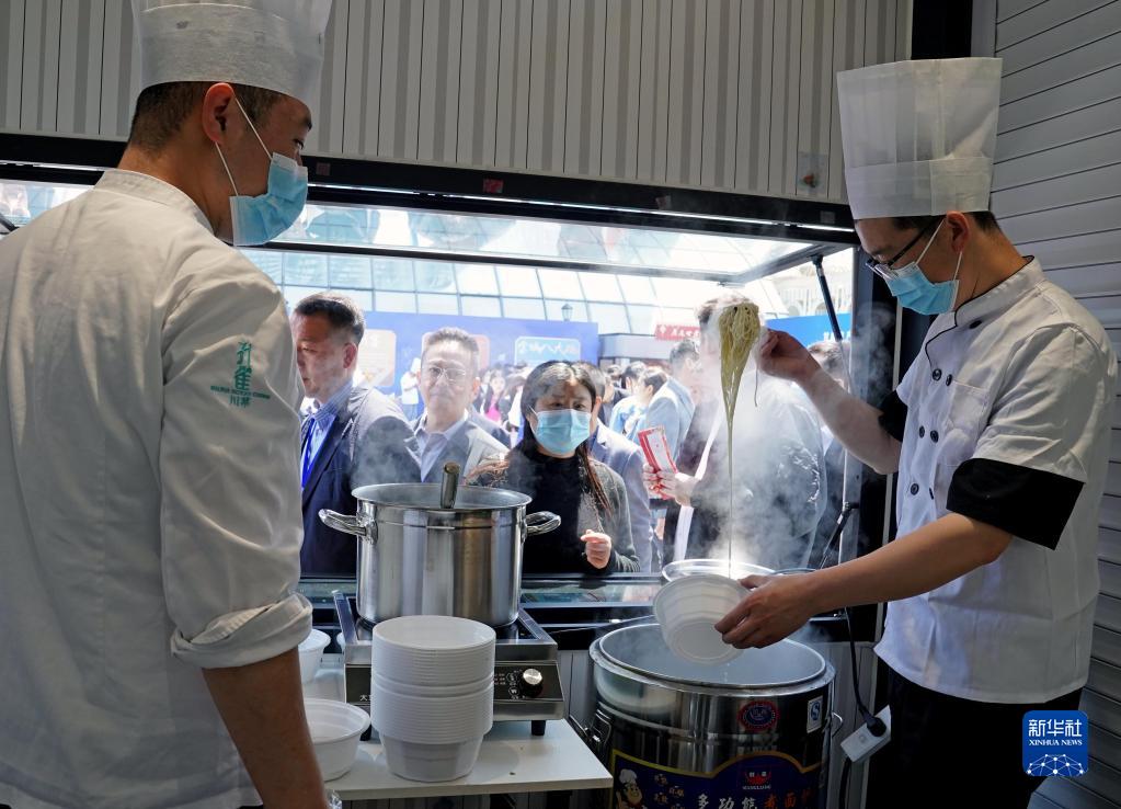 4月27日,人們在推介活動(dòng)現場(chǎng)等待品嘗蘭州牛肉面。