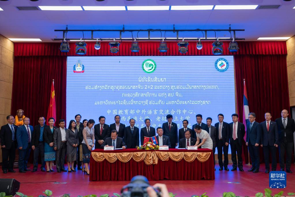 4月26日,在老撾萬(wàn)象,嘉賓出席中老聯(lián)合培養老撾本土中文教師項目簽約儀式。