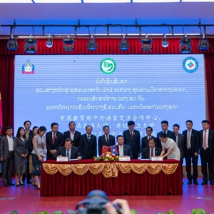 中國教育部中外語(yǔ)言交流合作中心、廣西民族大學(xué)、老撾國立大學(xué)三方聯(lián)合培養老撾本土中文教師項目簽約儀式26日在老撾國立大學(xué)孔子學(xué)院舉行。