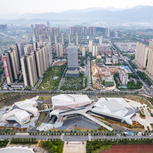 這是4月28日拍攝的建設中的郴州市文體中心(無(wú)人機照片)。