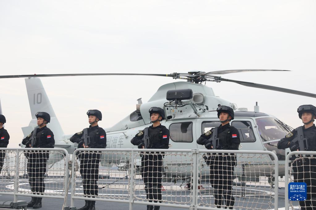 4月28日,中國海軍第44批護航編隊從浙江舟山某軍港解纜起航,特戰隊員在甲板整齊列隊。