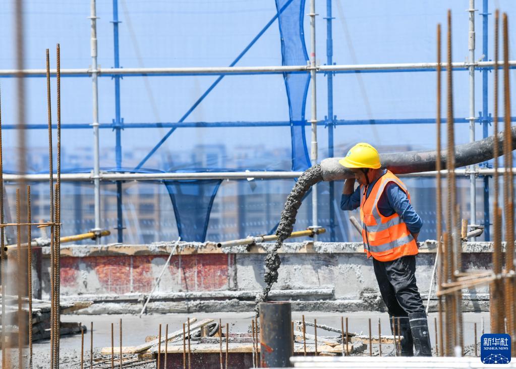 4月30日,中建三局的工人在成都芯谷產(chǎn)業(yè)功能區配套項目澆筑混凝土。