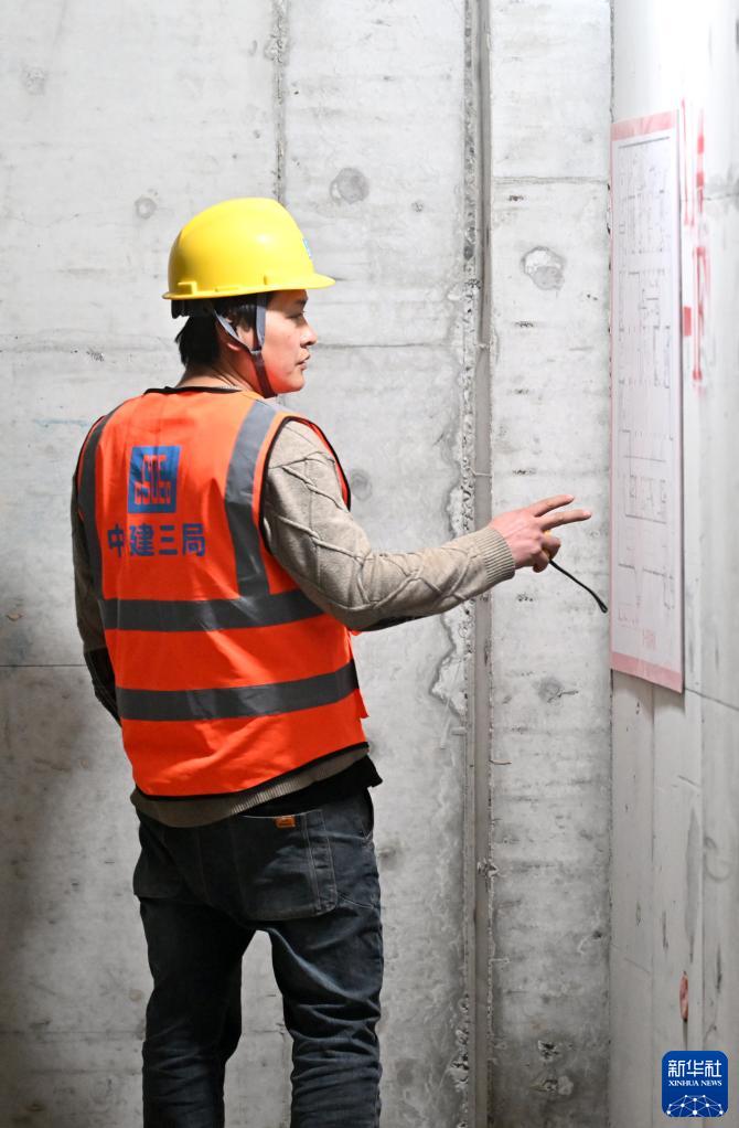 齊國超在施工現場(chǎng)查看圖紙(4月29日攝)。