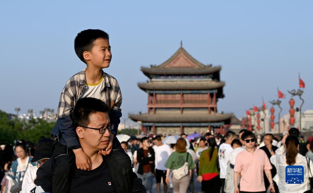 4月30日,游客在西安城墻景區參觀(guān)游覽。