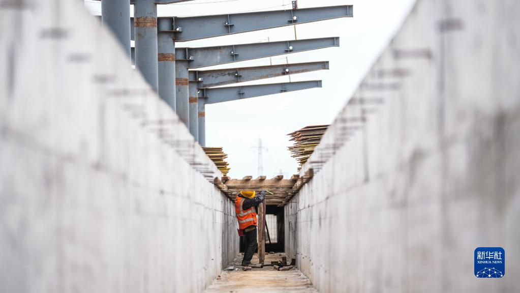 5月1日,中鐵建工集團工人在貴州貴安新區貴安站擴建項目工地施工。