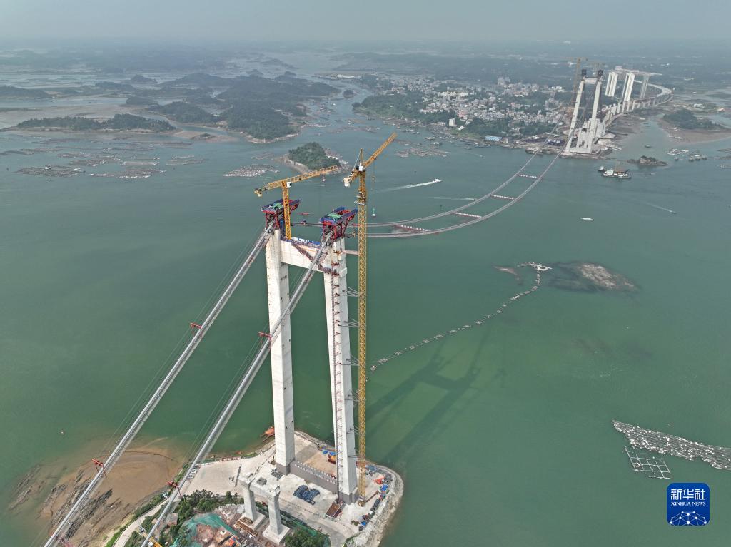 近日,位于欽州市的廣西最長(cháng)跨海大橋——龍門(mén)大橋項目建設全面進(jìn)入上部結構施工階段,其中龍門(mén)大橋主通航孔橋已完成主纜的架設,目前正在進(jìn)行緊纜施工。