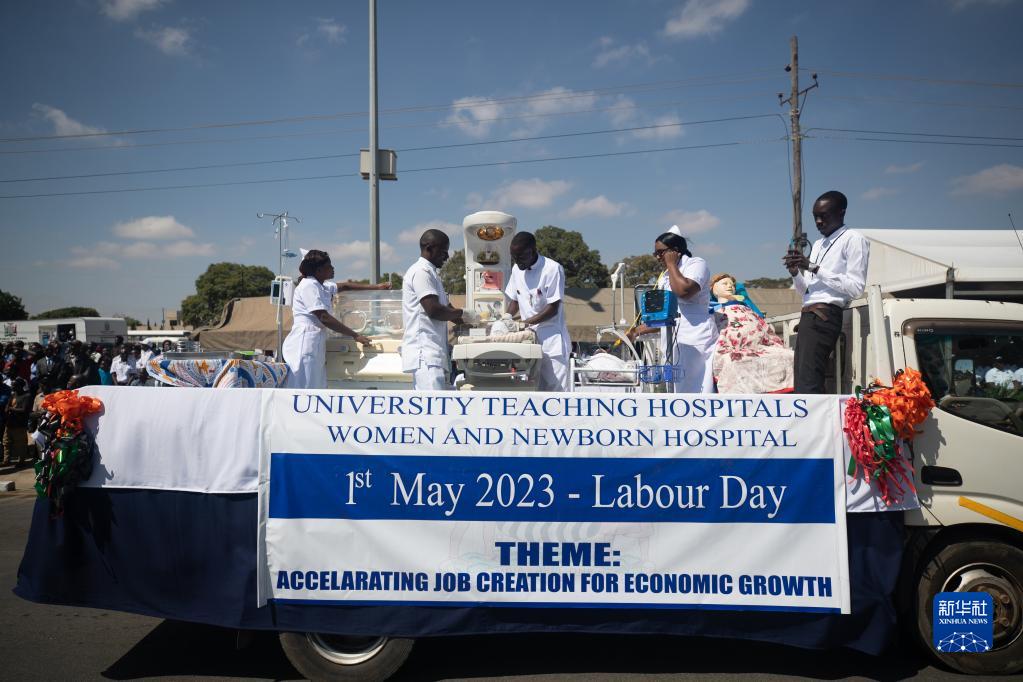 當天上午,贊比亞首都盧薩卡舉行游行活動(dòng), 慶?!拔逡弧眹H勞動(dòng)節。
