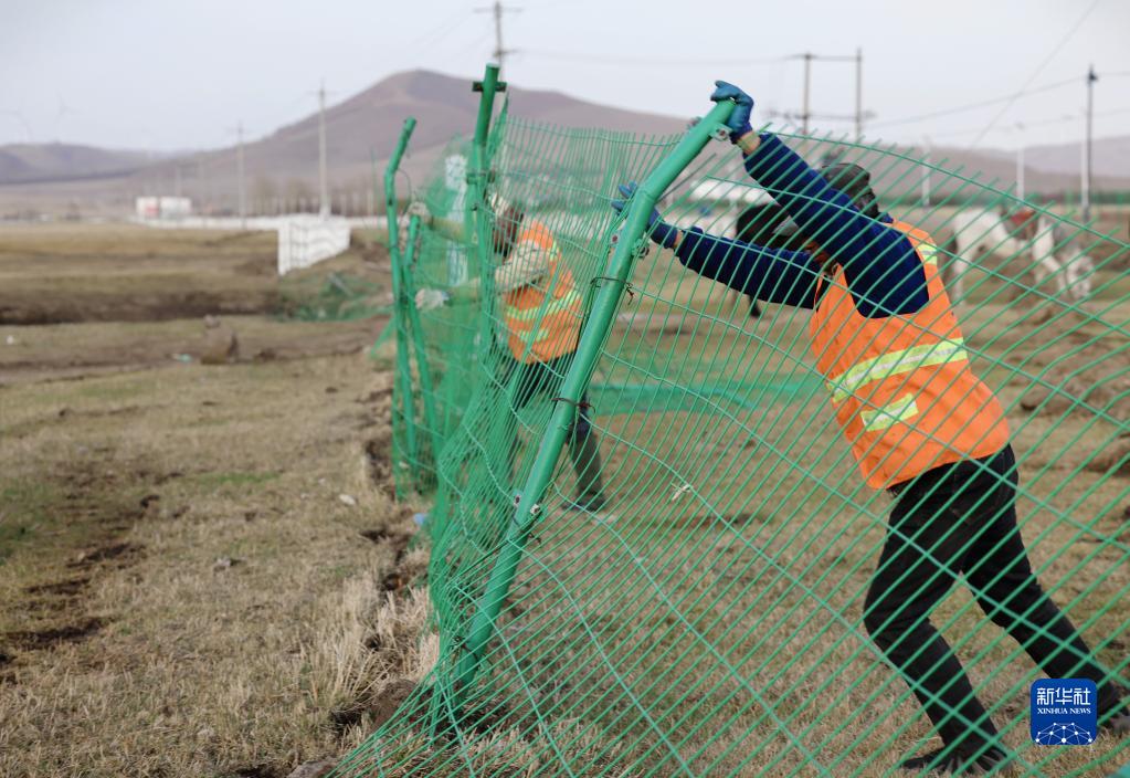 5月2日,河北省承德市豐寧滿(mǎn)族自治縣大灘鎮扎拉營(yíng)村的護林員趙世海(右)和羅金寶在海留圖國家濕地公園修復護欄。