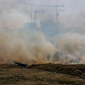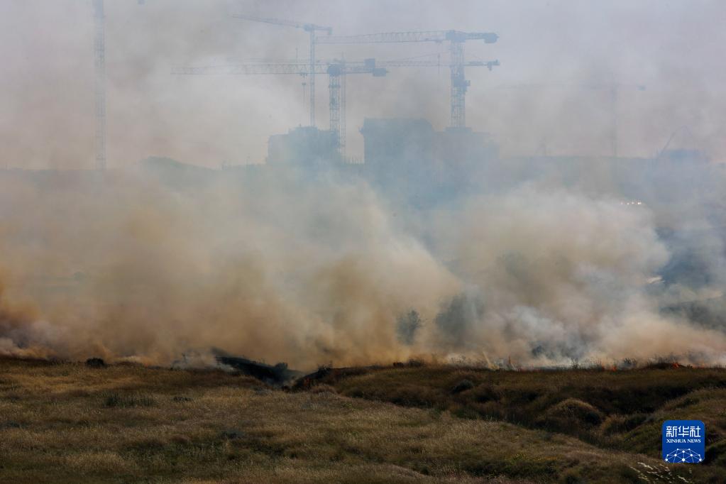 5月2日,在以色列南部城市斯代羅特,一處建筑工地遭火箭彈襲擊。