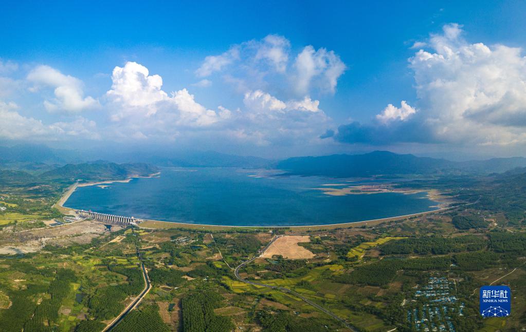 5月2日在海南省東方市拍攝的大廣壩水庫景色(無(wú)人機全景照片)。