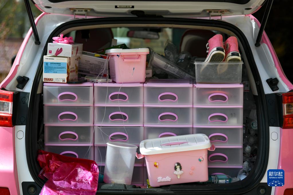 白婳喜歡粉色,她覺(jué)得這個(gè)顏色“特別干凈,特別治愈”,粉色大褂、粉色手套、粉色汽車(chē)、粉色藥箱,連聽(tīng)診器也是粉色,她總是以這樣的形象出現在農戶(hù)家的牛棚羊圈里。