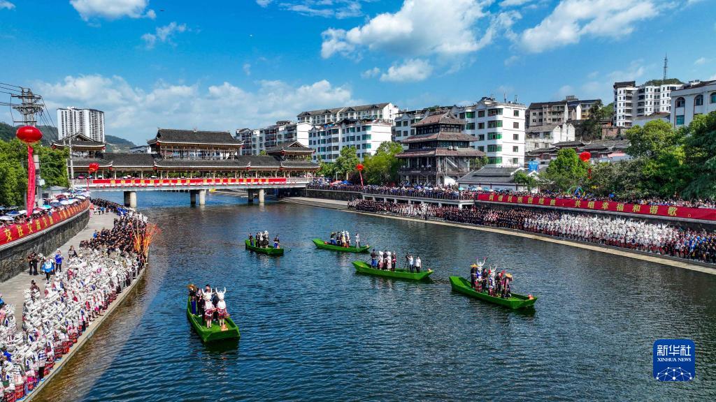 “五一”小長(cháng)假期間,貴州省黔東南苗族侗族自治州臺江縣迎來(lái)一年一度的苗族姊妹節。頗具特色的盛裝游演、民族歌舞表演、苗家長(cháng)桌宴、民族民間工藝品展示等系列活動(dòng)吸引眾多游客前來(lái)觀(guān)賞游玩。
