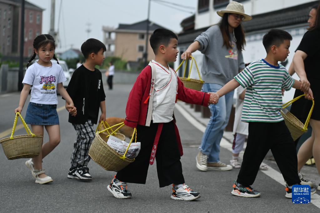 臨近立夏節氣,浙江省杭州市臨平區塘棲鎮丁山河村的村民們做米塑“立夏狗”、腌灰鴨蛋、搭土灶蒸“野米飯”等,用江南水鄉傳統的民俗迎接初夏。