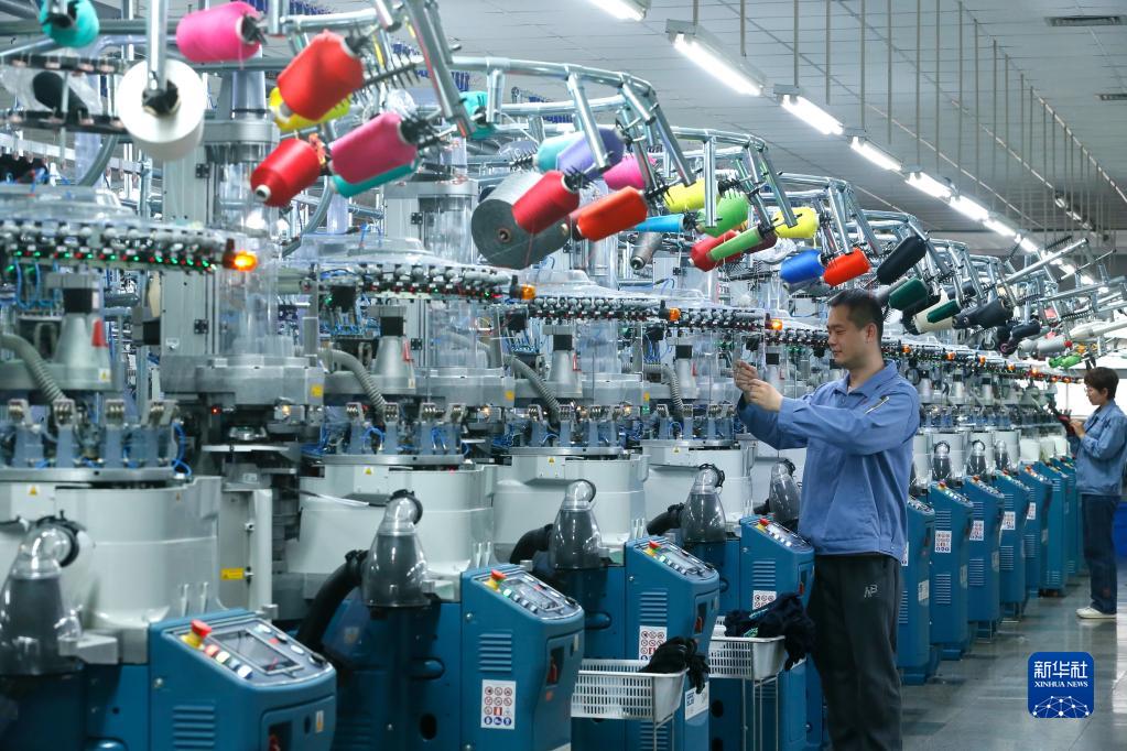 5月4日,在山東省青島市即墨區一家制襪企業(yè),工人生產(chǎn)出口到海外市場(chǎng)的產(chǎn)品。