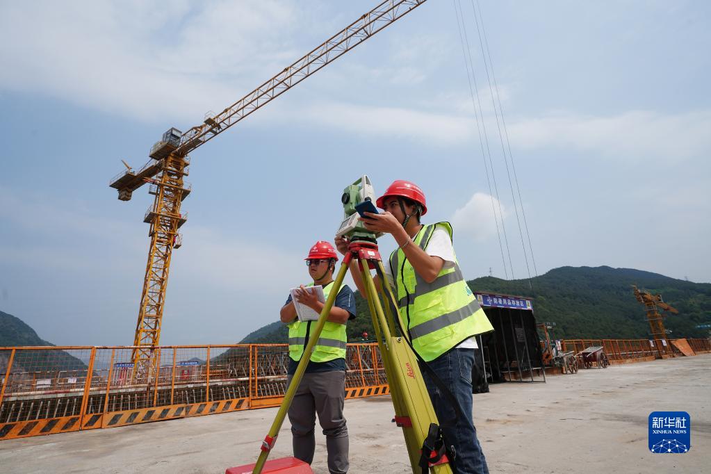 5月4日,在重慶市北碚區渝武高速復線(xiàn)觀(guān)音峽嘉陵江特大橋,中交一公局四公司橋梁工區工作人員孫培耕(左)和彭昭屏在對橋面高程及軸線(xiàn)偏位進(jìn)行測量。