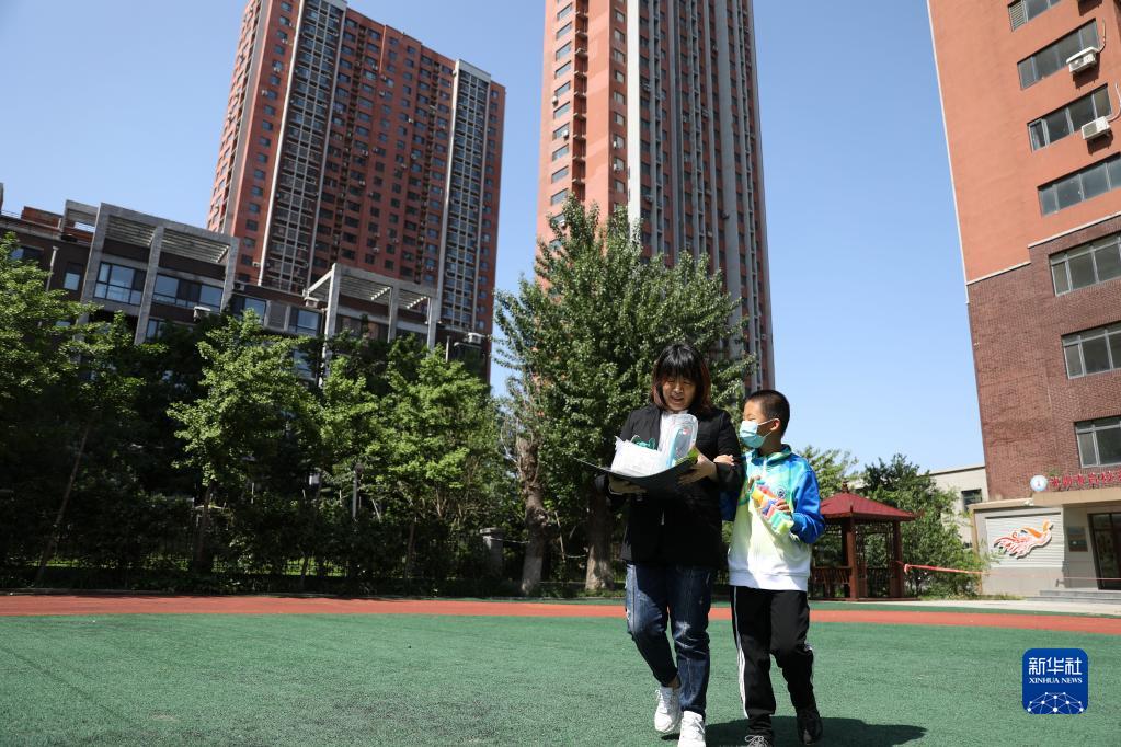 5月18日,戶(hù)外上課結束,莊巖帶著(zhù)一名還不是很熟悉學(xué)校內路面環(huán)境的學(xué)生走回教室。