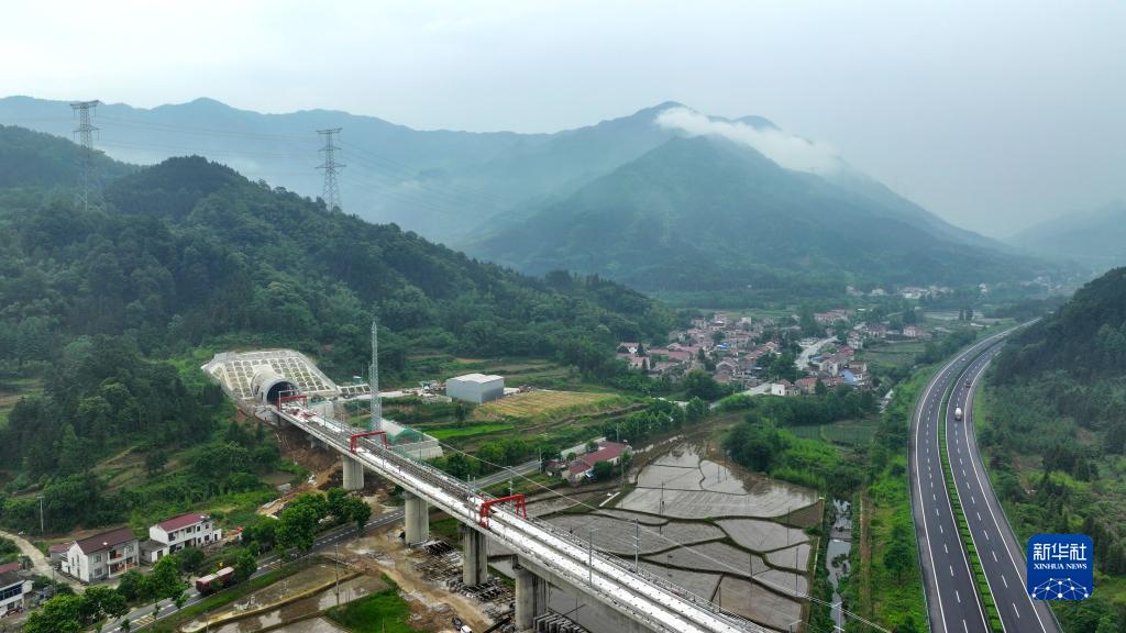 這是中鐵十局池黃鐵路嶺上村隧道進(jìn)口(5月21日,無(wú)人機照片)。