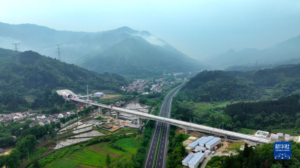 這是中鐵十局池黃鐵路嶺上村隧道進(jìn)口(5月21日,無(wú)人機照片)。