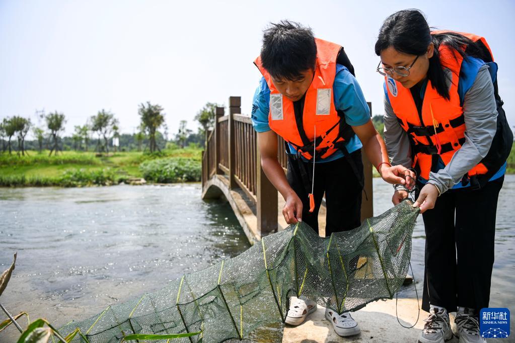 5月20日,技術(shù)人員在廣西大藤峽水利樞紐工程南木江副壩仿自然生態(tài)魚(yú)道回收用于監測過(guò)魚(yú)種類(lèi)的地籠網(wǎng)。