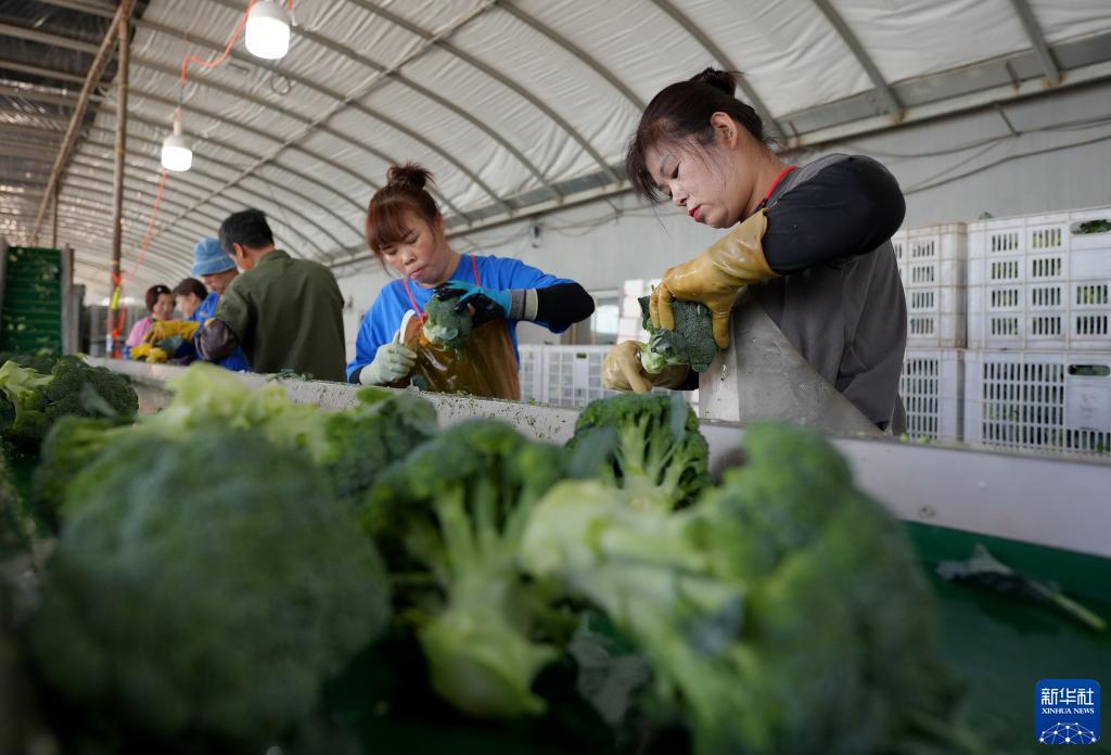 5月21日,河北省灤州市小馬莊鎮一家蔬菜種植合作社的社員在分揀收獲的西蘭花。