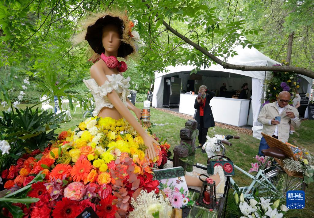 這是6月9日在加拿大溫哥華舉辦的“花卉城市之旅”花卉展上拍攝的花卉裝置藝術(shù)作品。
